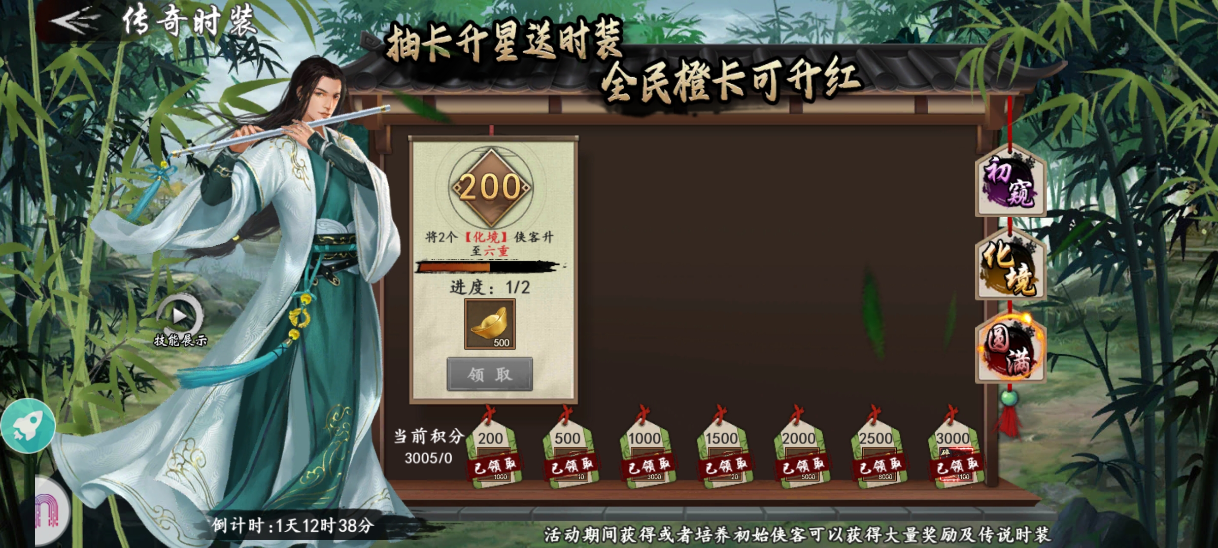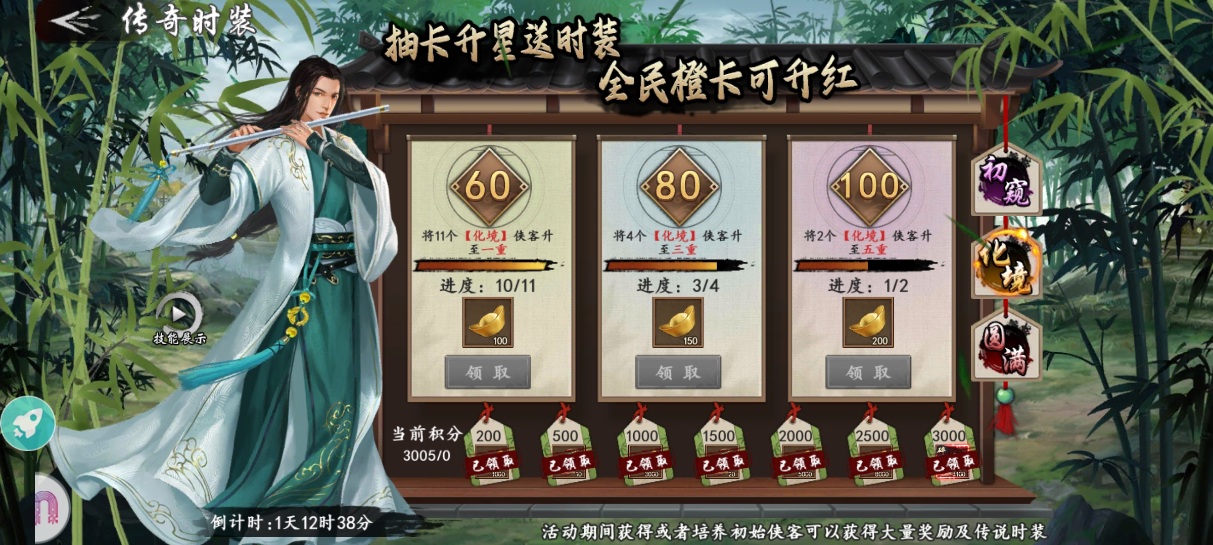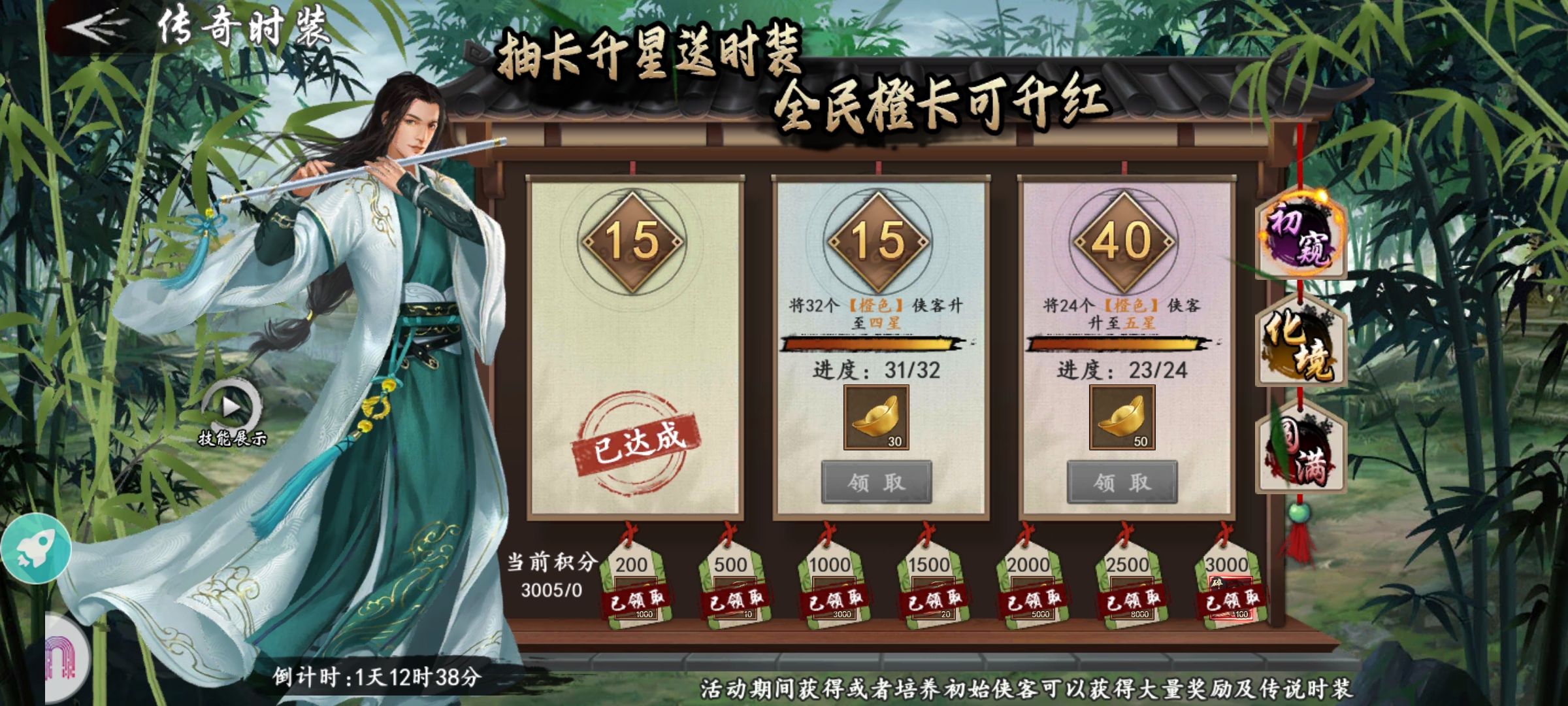 倒数第三天,系统又照顾了一回,神话侠客没歪顺利增加了一个四星15分,第二天拍卖出100马钰碎片,不惜血本痛快拿下,3005分胜利达成碧海潮生时装分数!