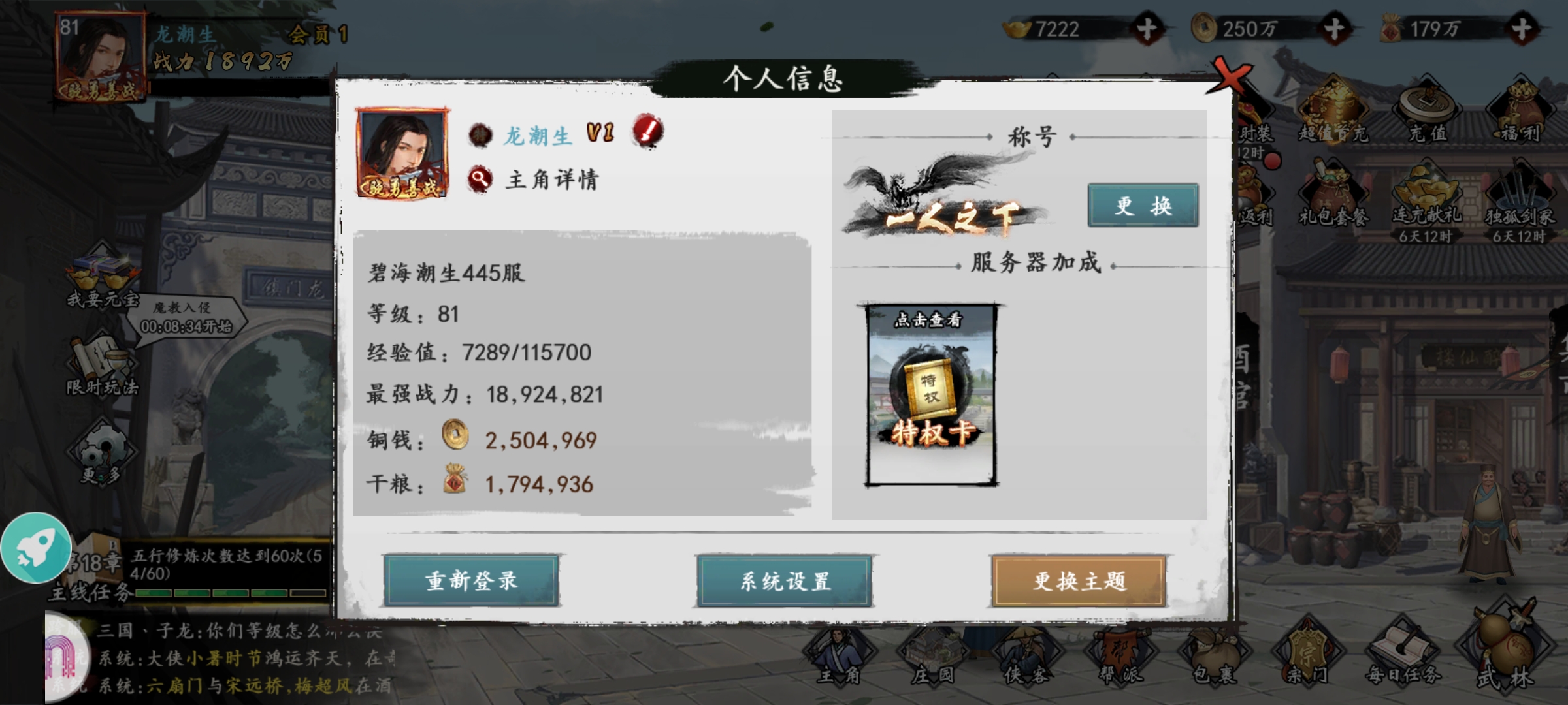 其实我是个新手,计算能力强一点。玩过几个服,都不到一个月,因为规则的坑太多了,总是顾此失彼。了解基本规则后,苦等了两天,445服于7月8日星期四上午十点正式开服,我立刻马上投入零氪不充攻克碧海潮生时装的进程。
